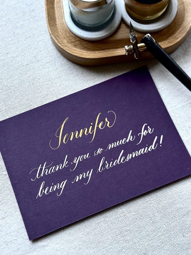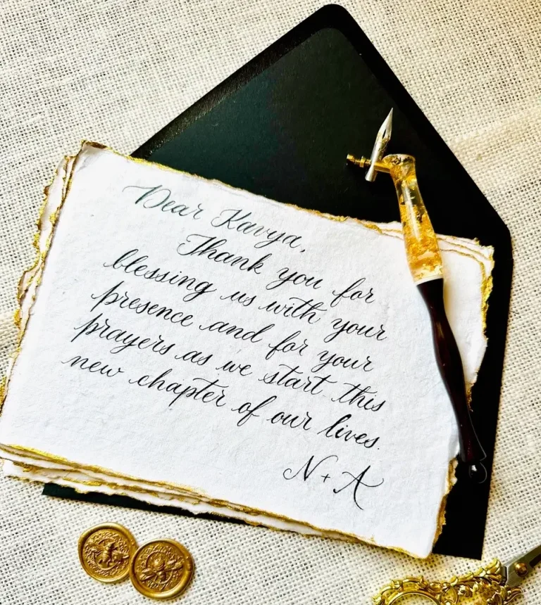 Luxe Script by Sherin showcases her unique calligraphy style across wedding stationery, thank-you letters, and more, adding effortless elegance to every detail.
