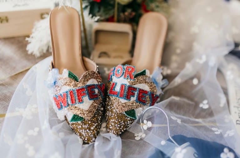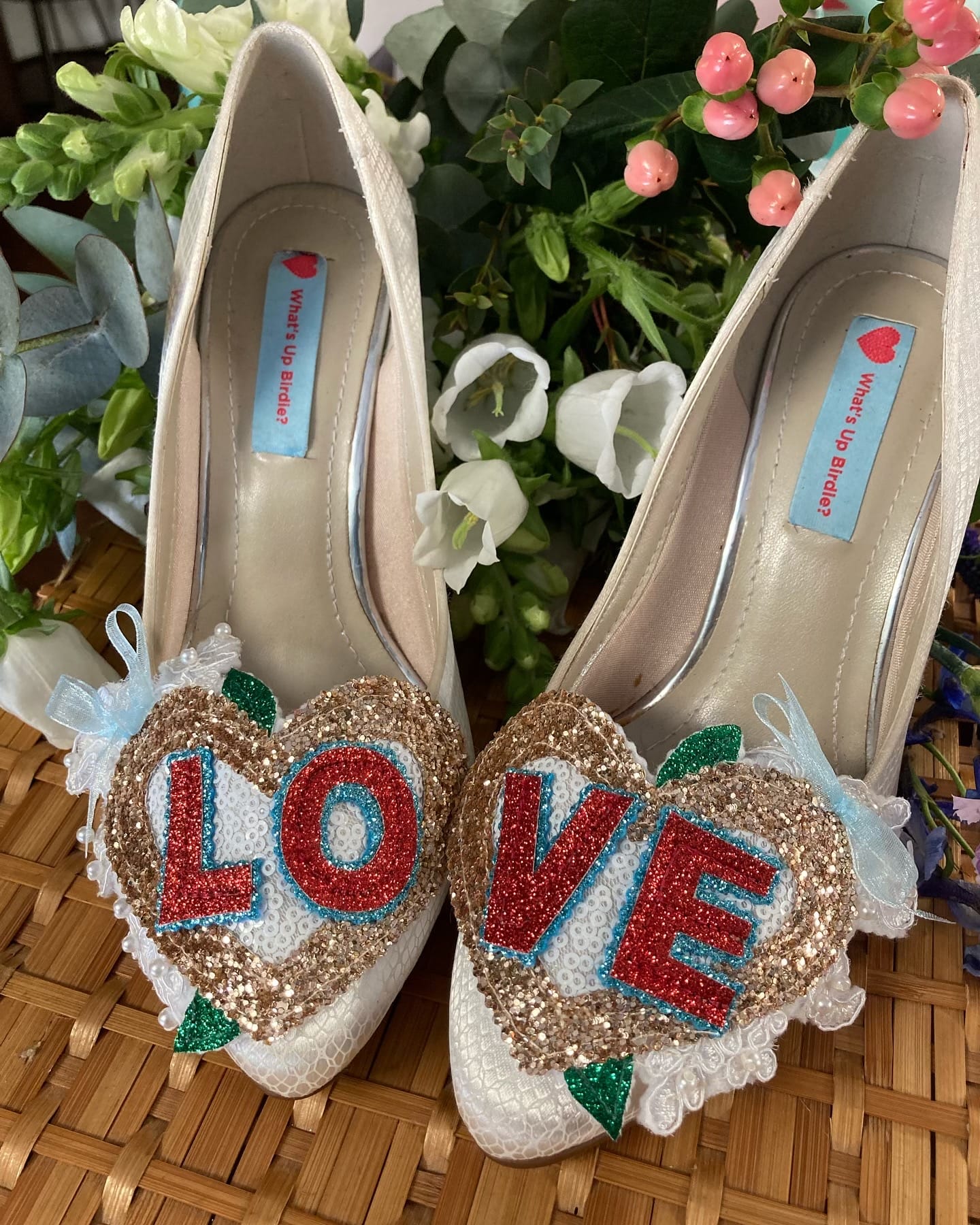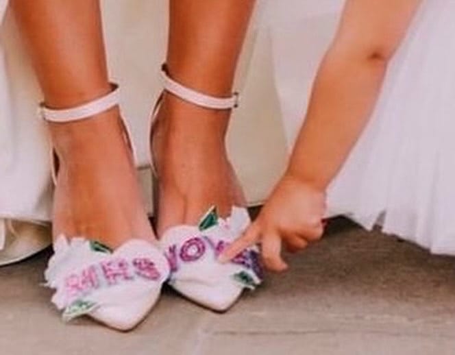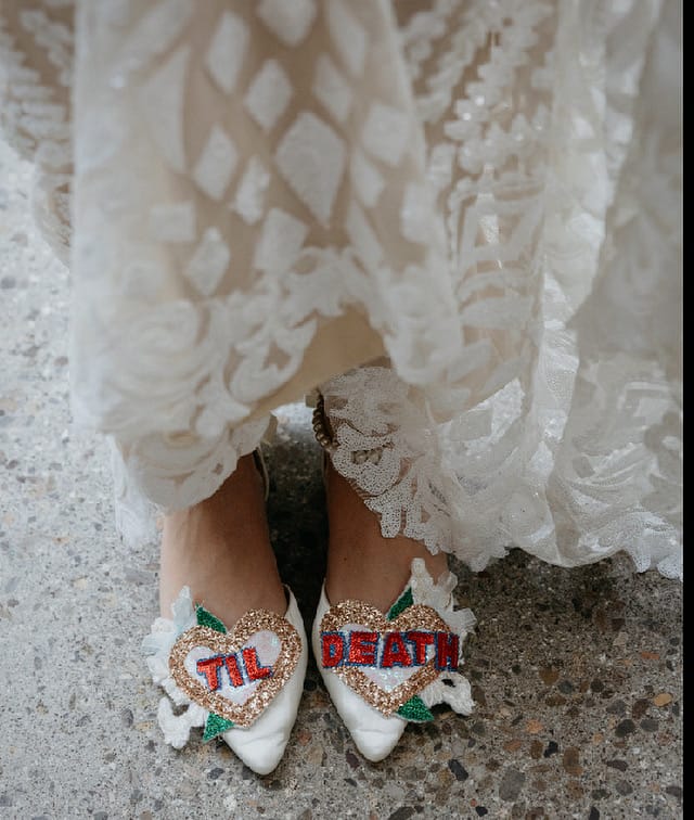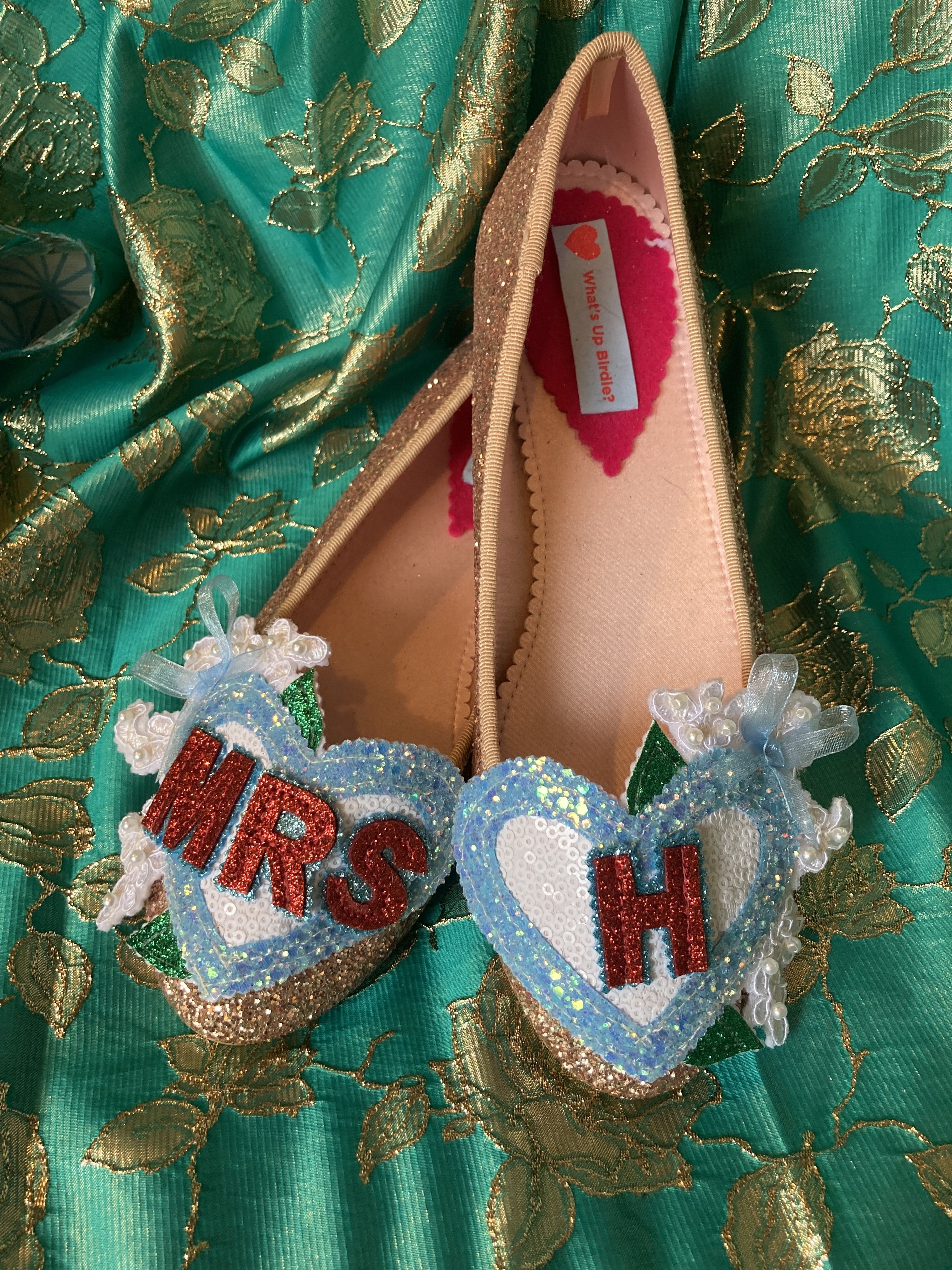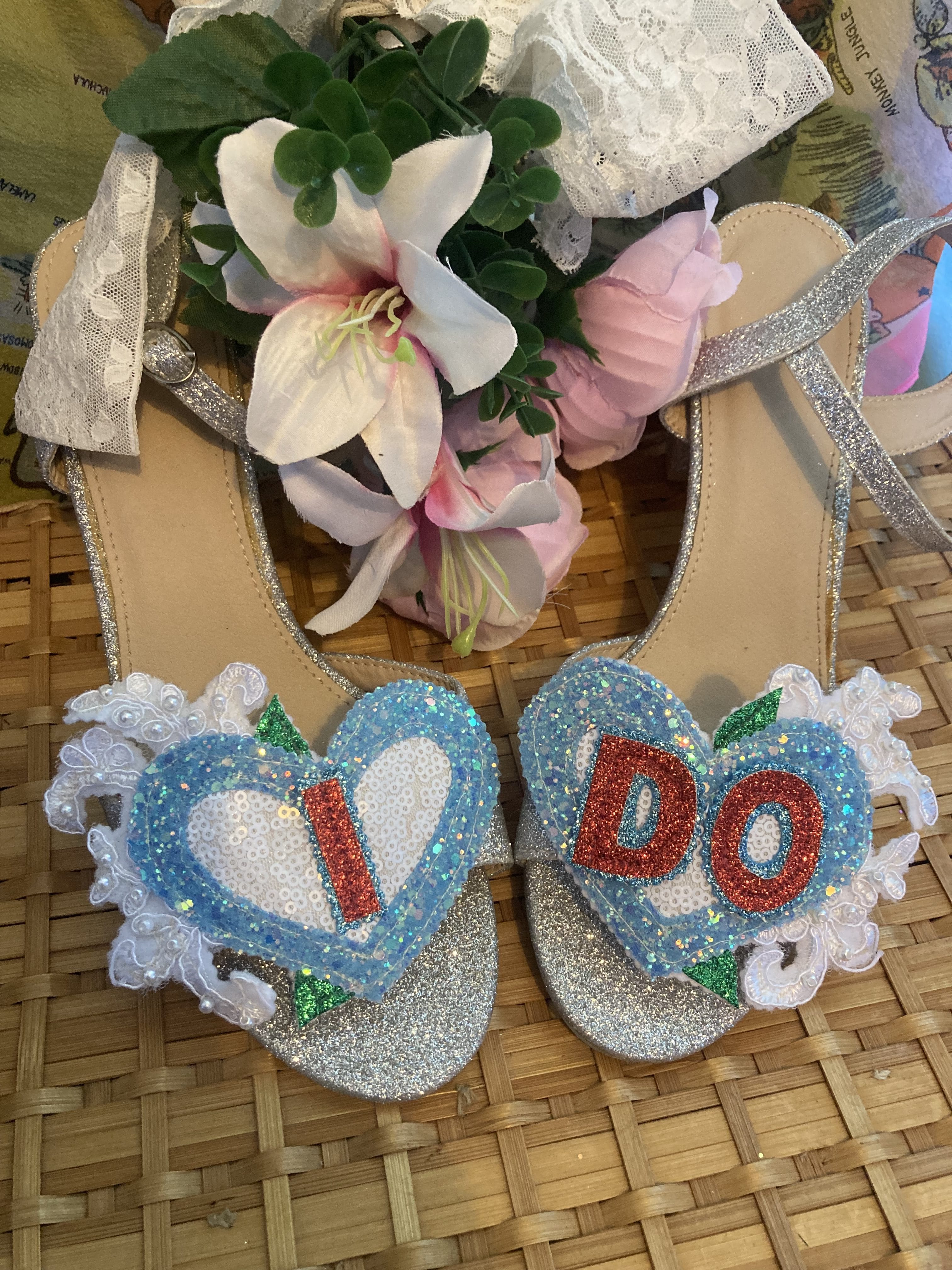Beautiful handmade bespoke personalised detachable shoe clips. Choose from LOVE, AMORE, MR MRS, Til Death, MRS NAME, True Love, I DO or your choice up to 6 letters per foot wedding shoe clips.