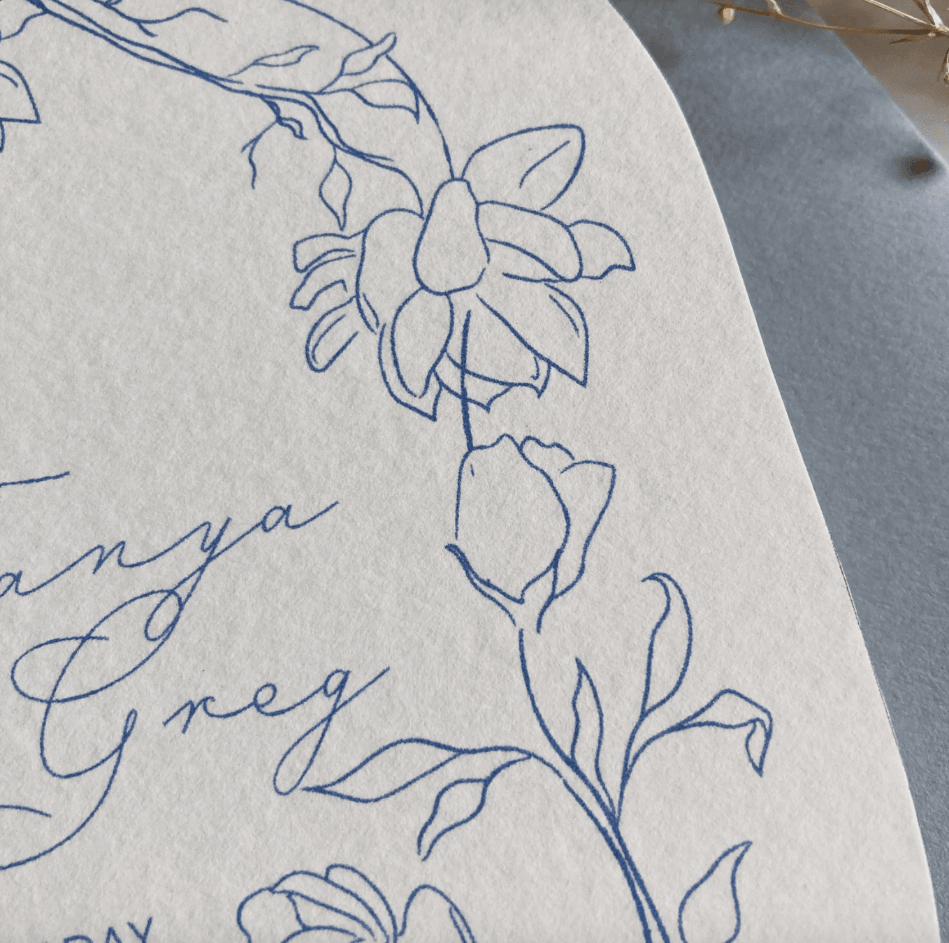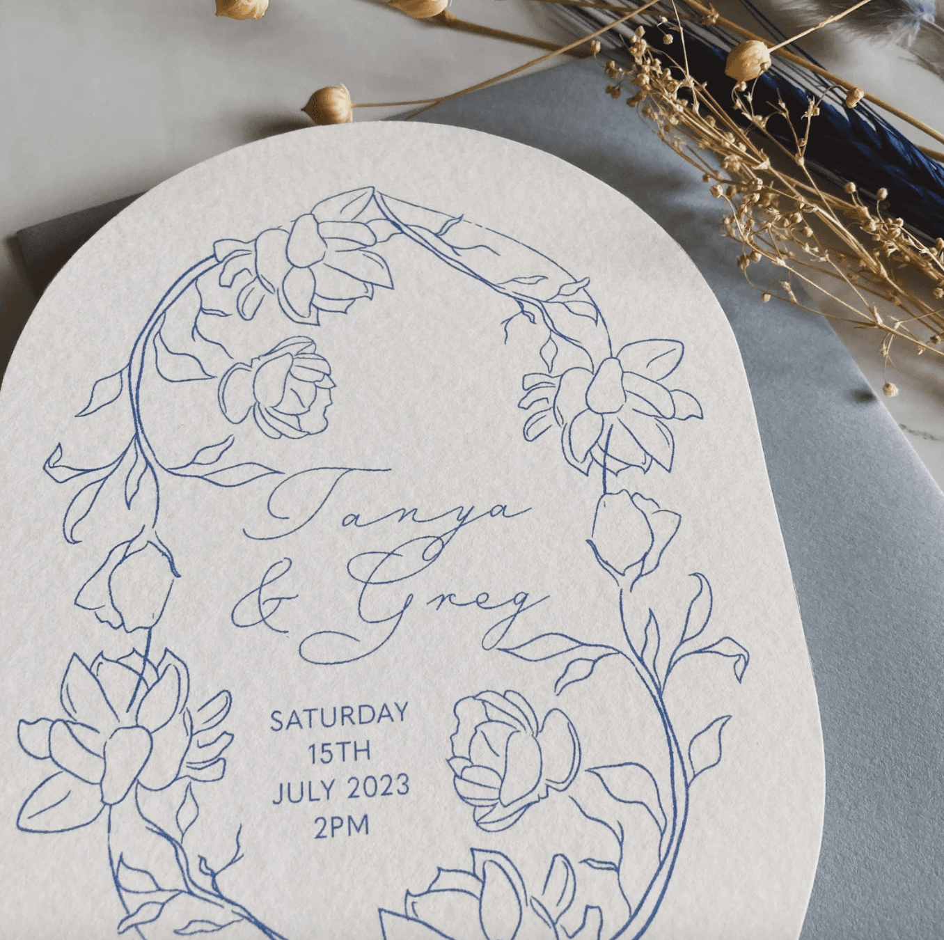 All our invitations can be customised, so if you’d like to change the blue, just message us and we’ll see what we can do!