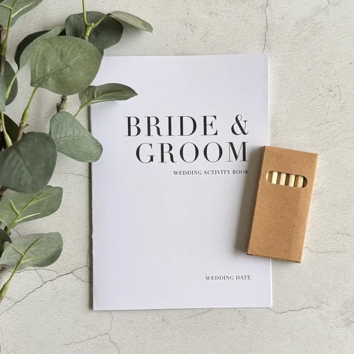 Each book is customised with your details and comes with its own pack of crayons, ready to use. With 8 double-sided pages of colouring and activities, they’re a thoughtful addition to your big day.