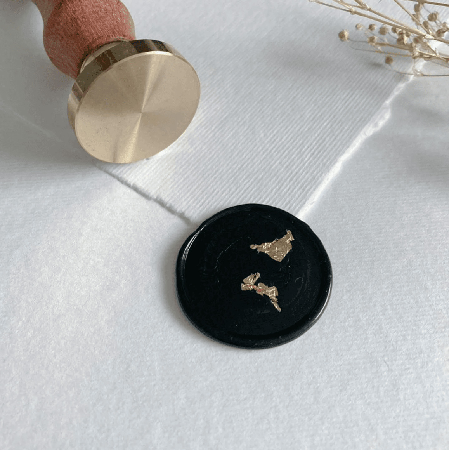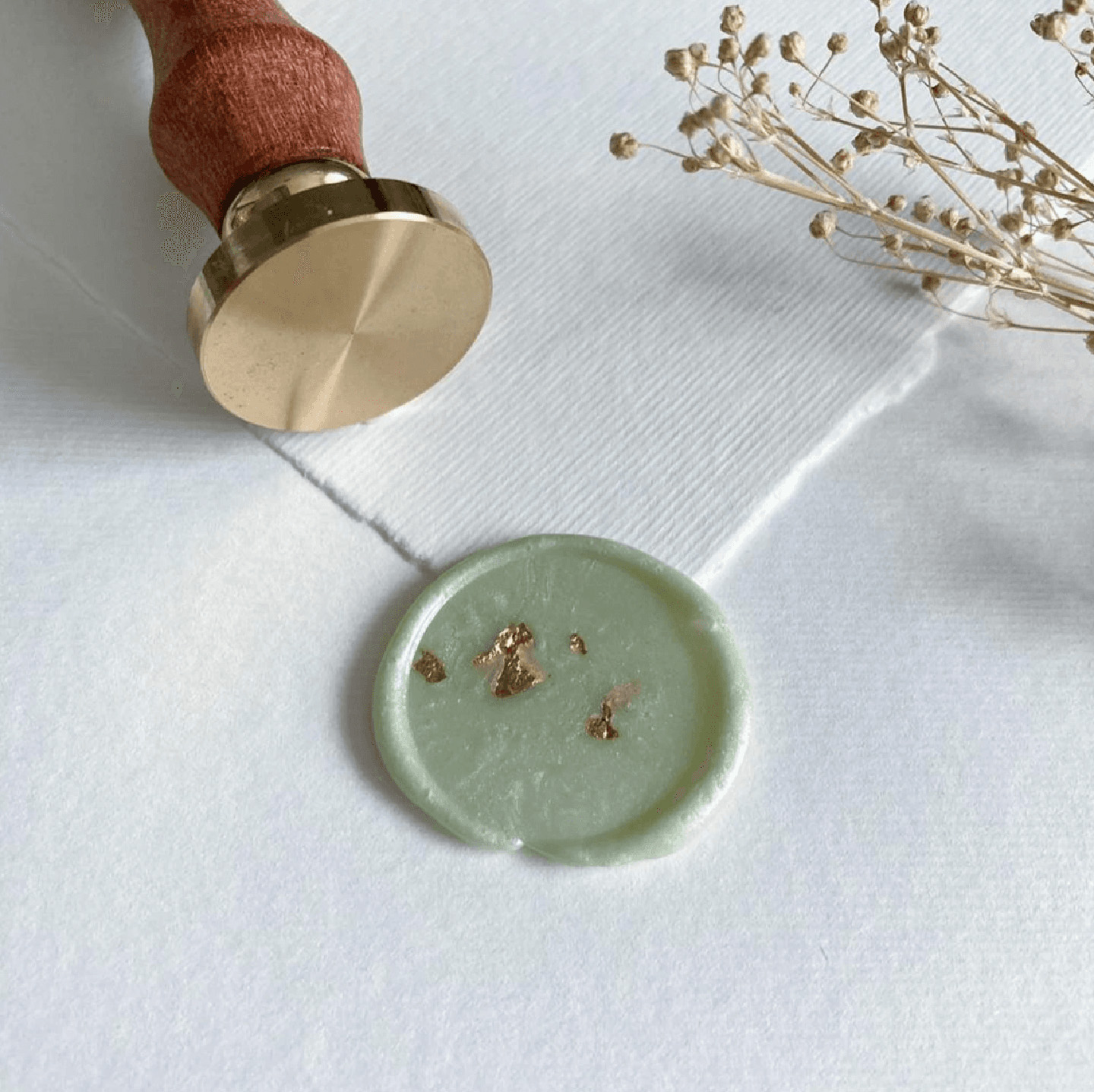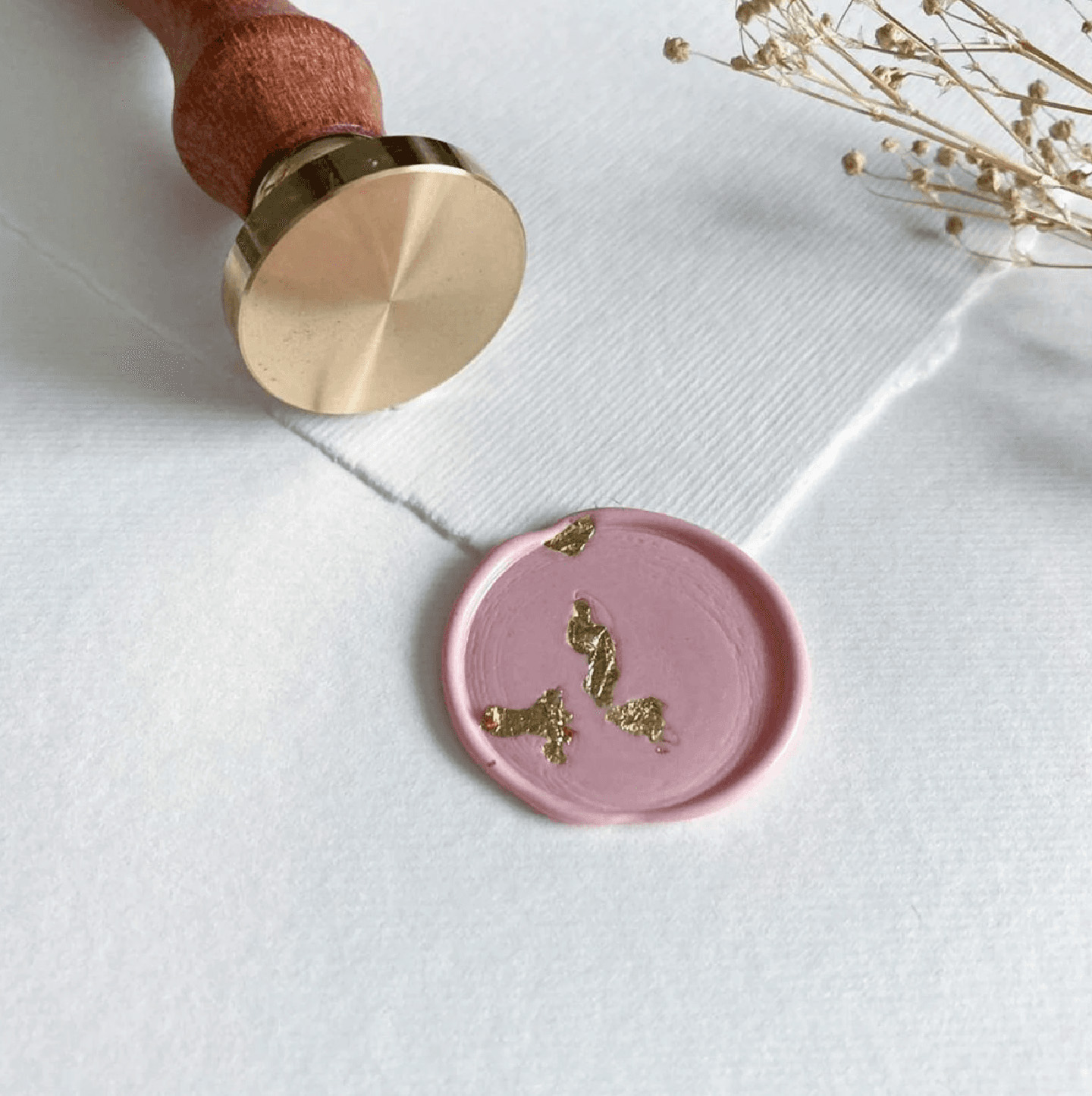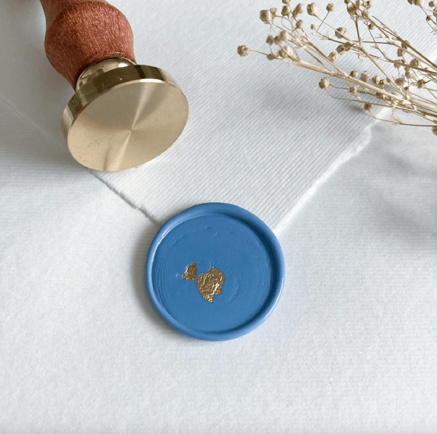 Our gold leaf wax seals come with a self adhesive sticker on the back. Great for use on place names, envelopes, wedding invitations or wrapping paper. Available in 13 different colours including pink, blue, white and vellum.