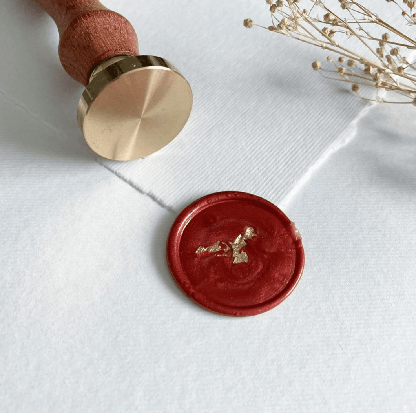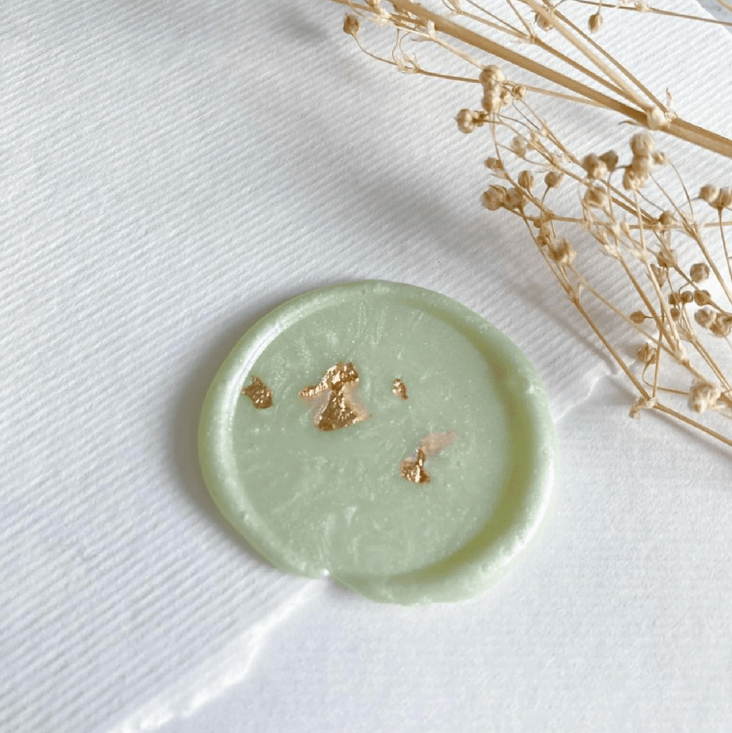 Add that extra special touch to your invites, projects, gift wrapping, table decor and more with our beautiful gold leaf wax seals. These wax seals come in a number of colours, each with a few flakes of gold leaf pressed in. A perfect match for any envelope or decoration.