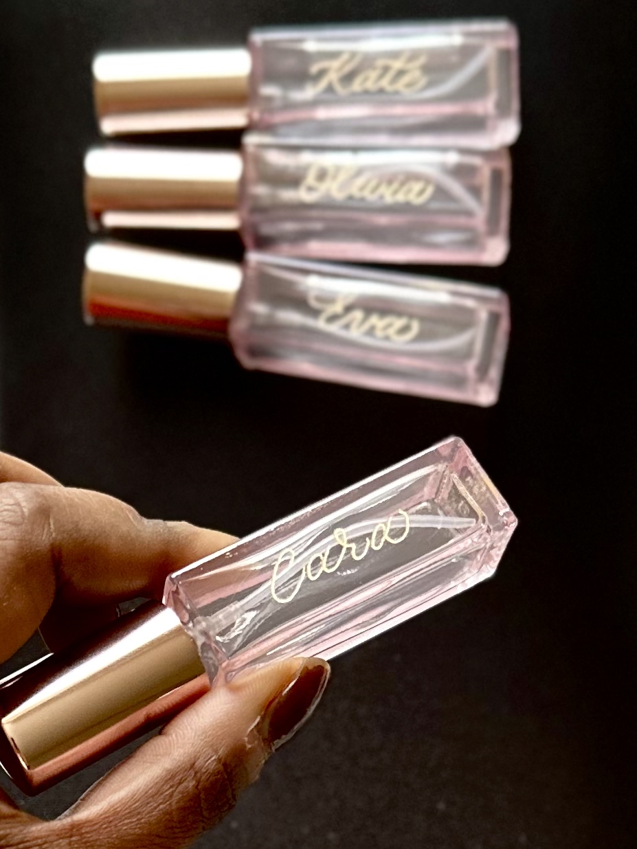 Each bottle is individually engraved by hand, making every piece beautifully unique — a keepsake your bridesmaids will treasure long after the wedding day.