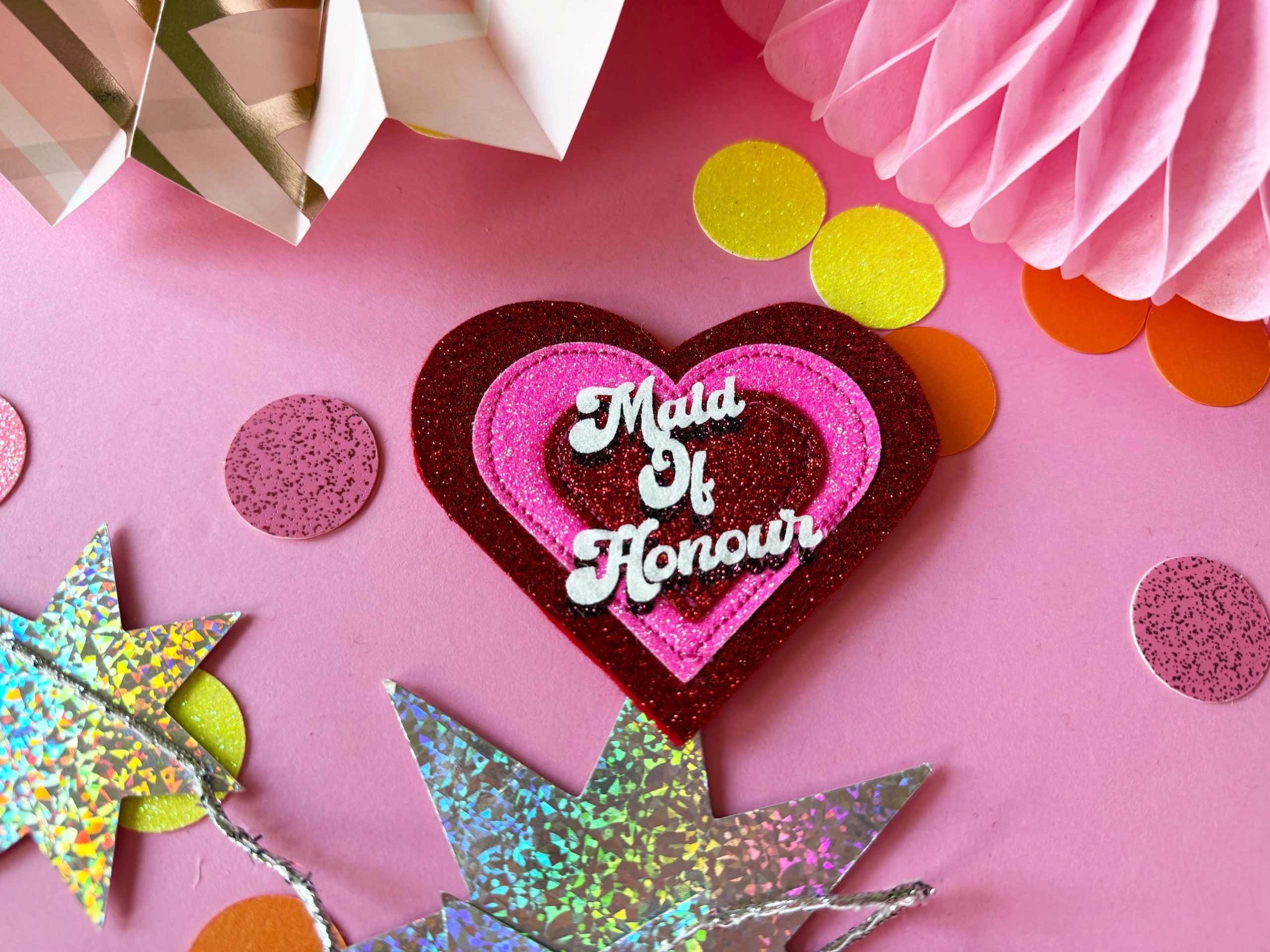 Add a little sparkle to your hen do or wedding morning with this personalised wedding glitter badge. Designed to celebrate every role in style, it’s a fun yet thoughtful detail your bridal party will love wearing.