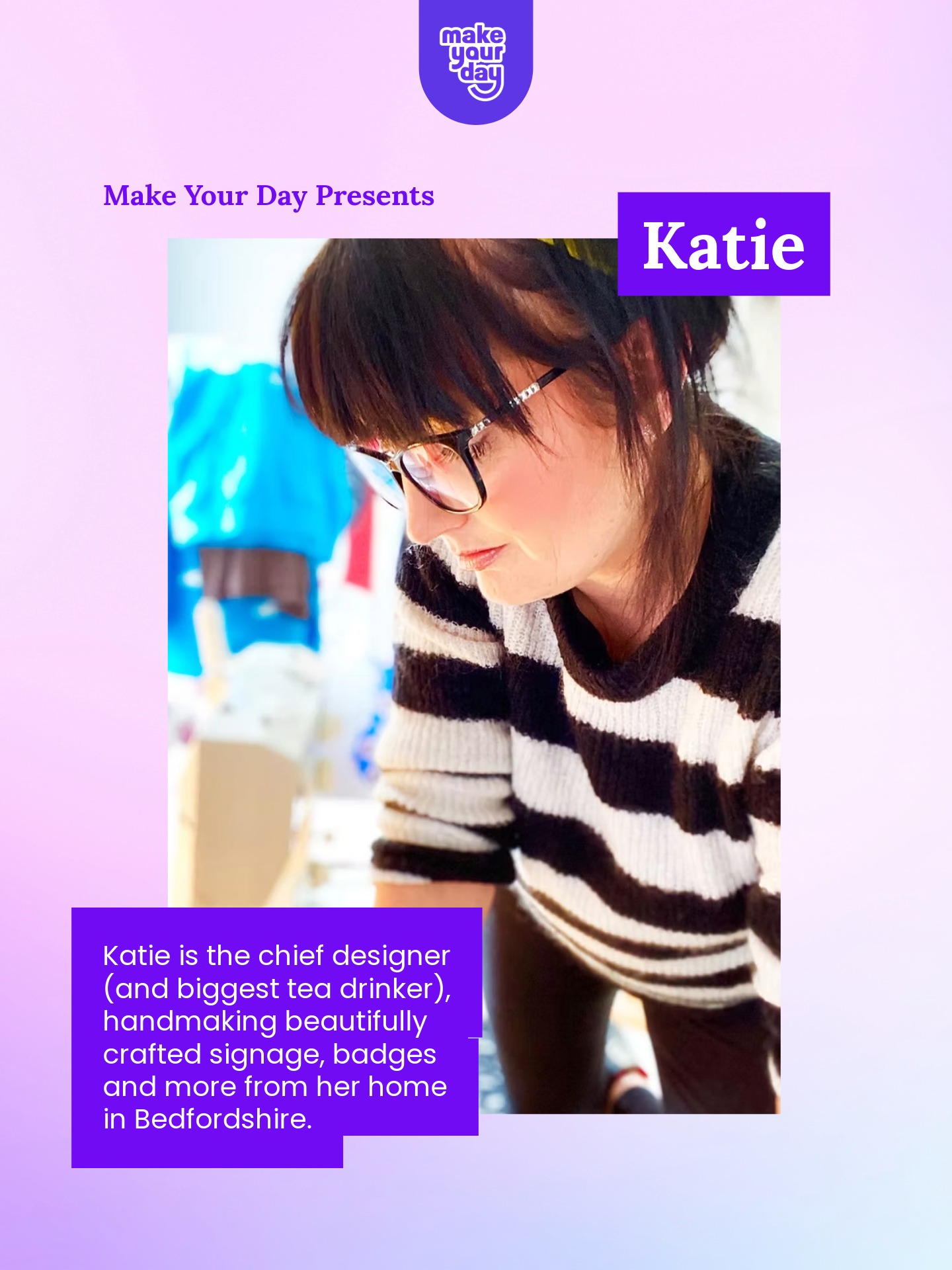 Handmade in Bedfordshire by Katie Oldhaus, who carefully crafts beautifully detailed signage, badges and celebration pieces from her home studio.