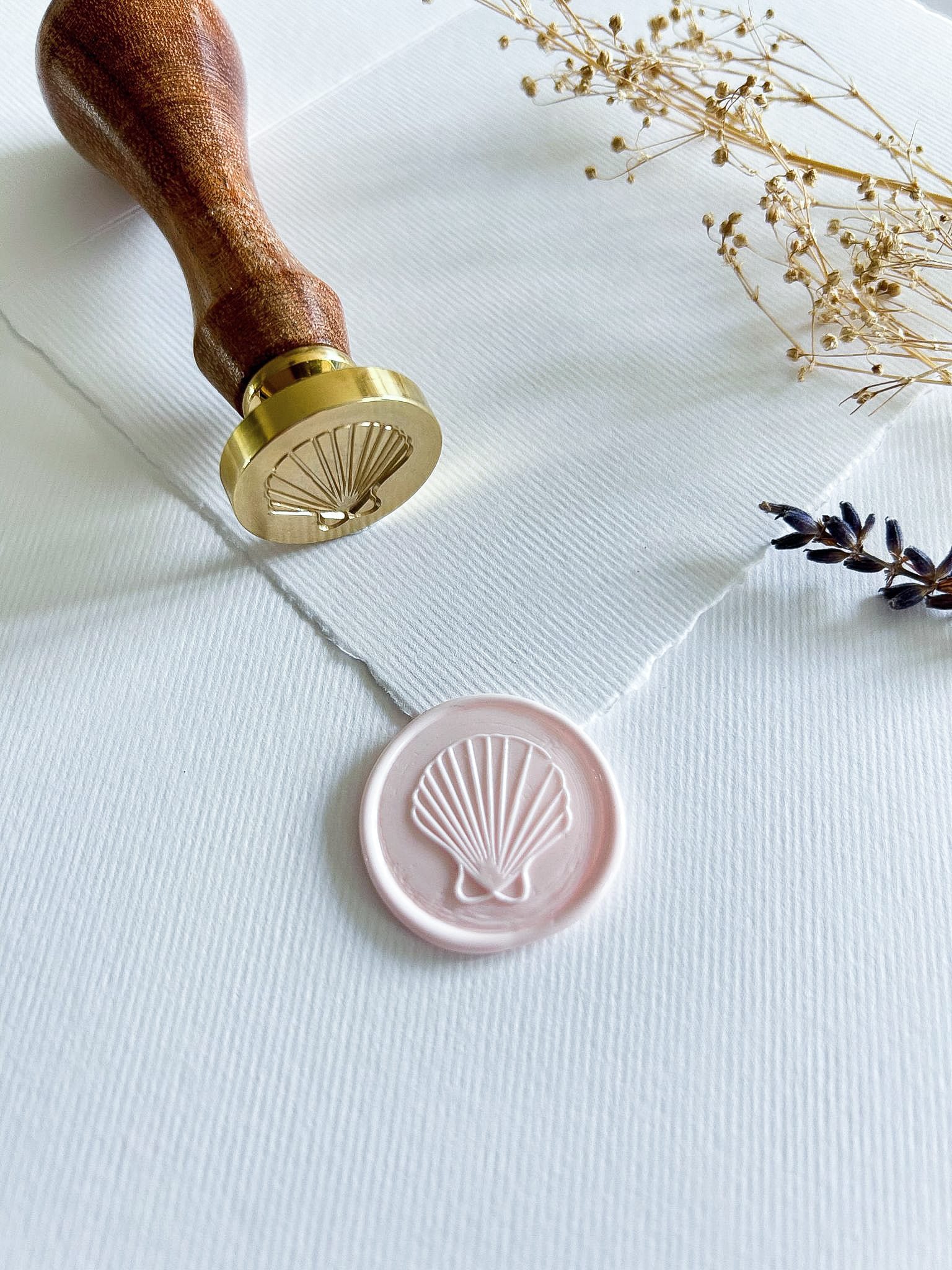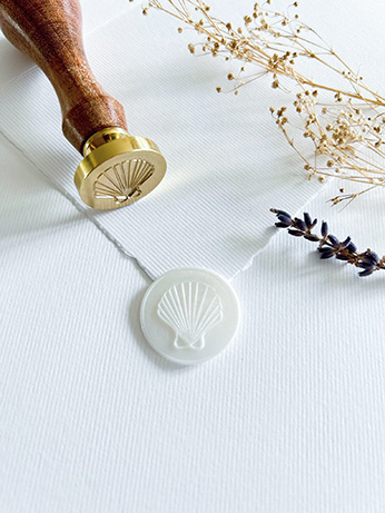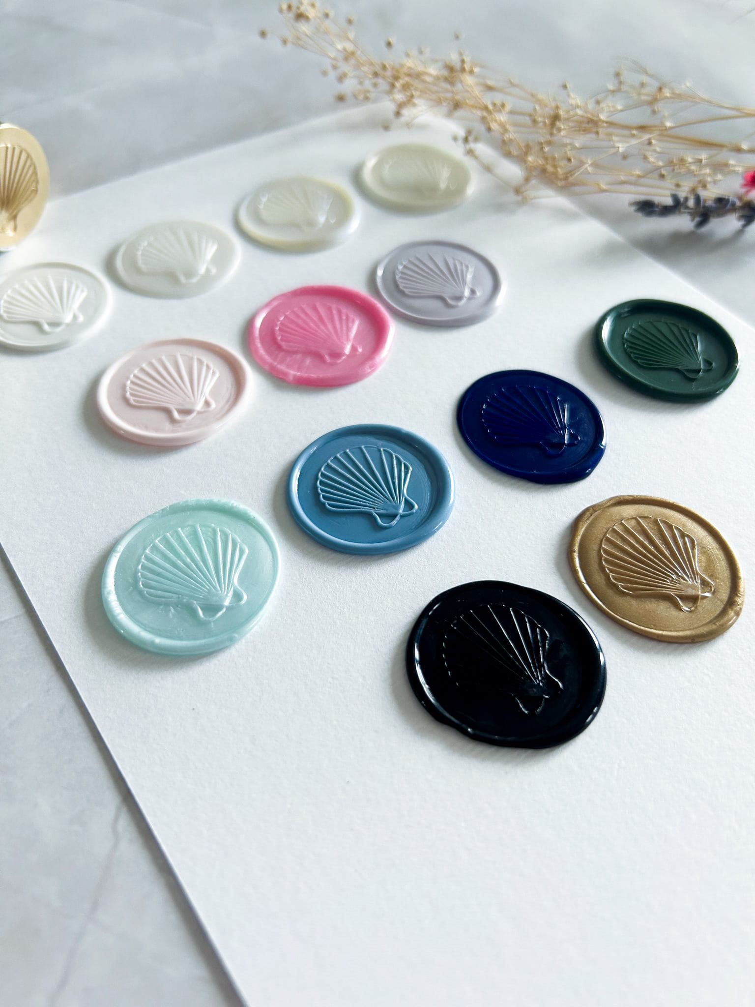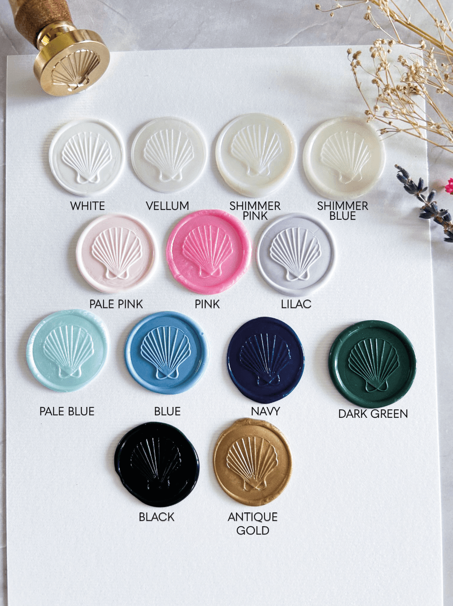 Our shell wax seals come with a self adhesive sticker on the back. Great for use on place names, envelopes, invitations, wrapping paper and more. Available in 13 different colours including pale pink, pale blue, and white which match our shell place names perfectly. And now we have an on trend lilac colour too!