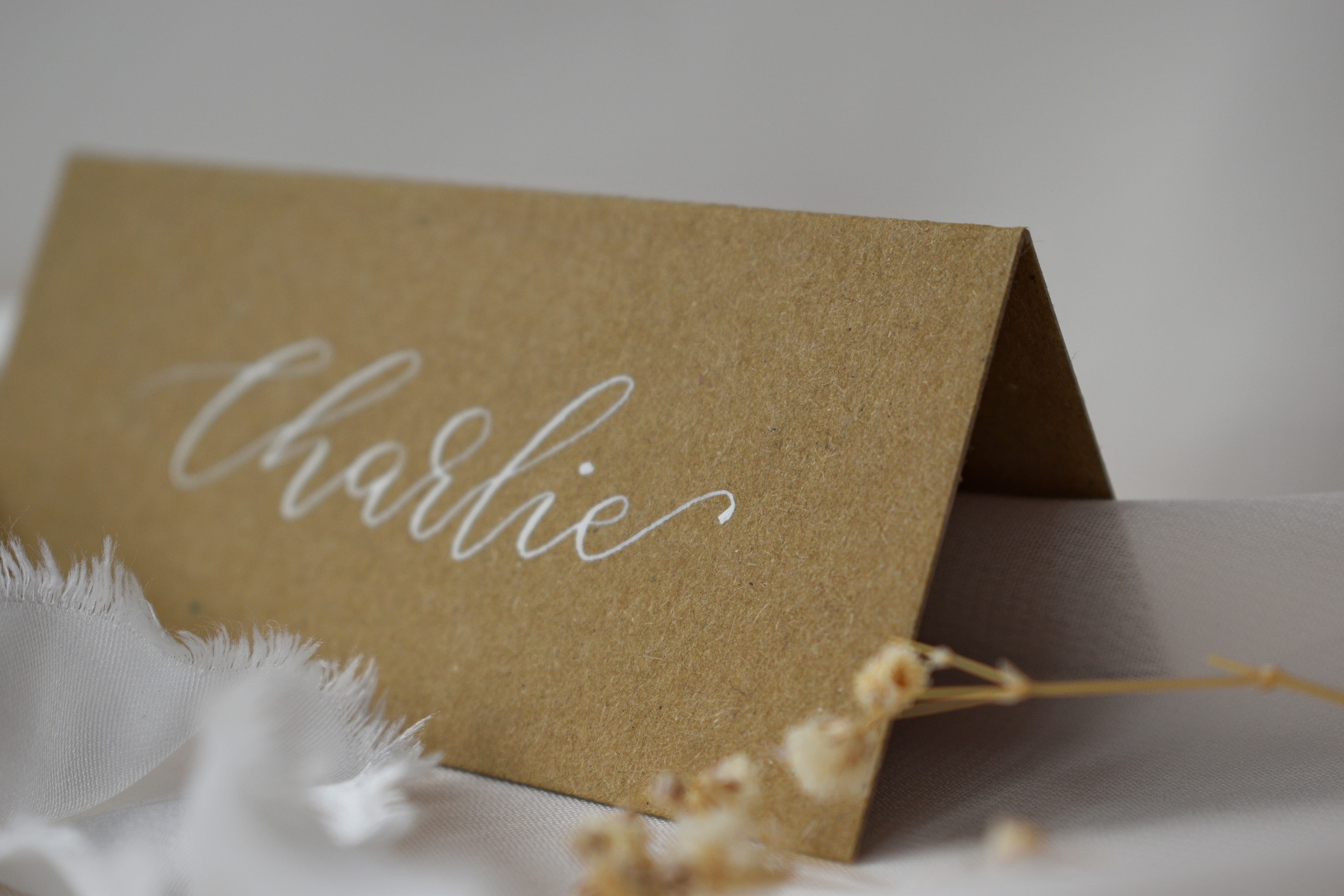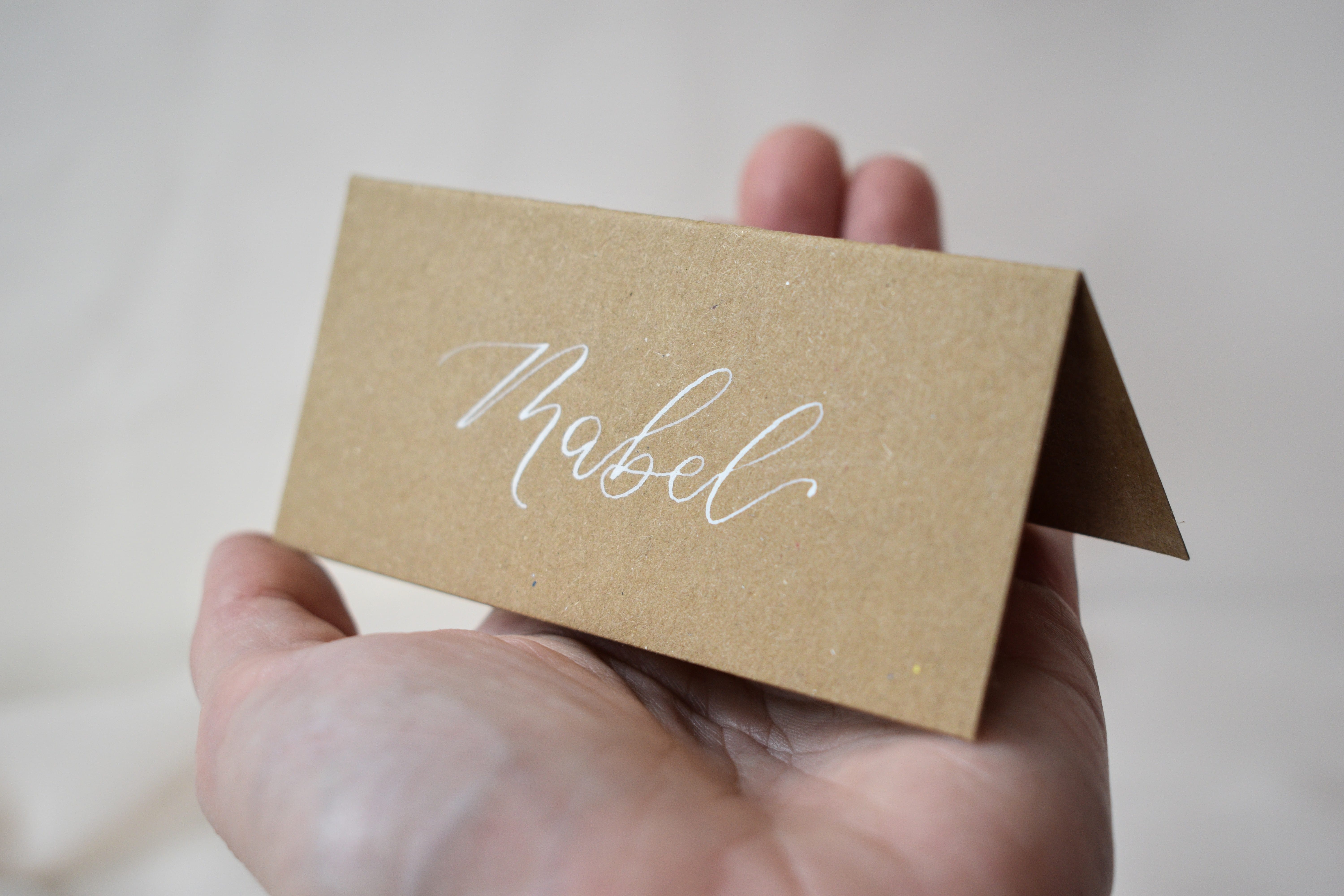 These rustic, kraft name cards are a lovely addition to your wedding table settings or dinner party decor. Your guests will love finding their personalised card at their place setting and may even take it home as a wedding favour or keepsake. Pair with my handwritten table plan cards and table numbers to complete your wedding seating plan.