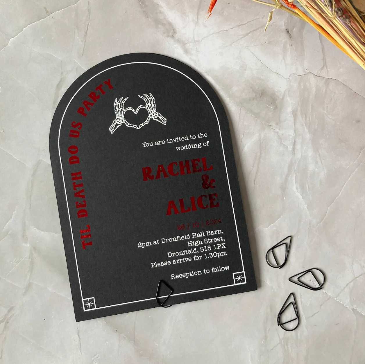 - This invite is finished off with a black tear drop paperclip as standard, to hold your invite together as seen in the images.