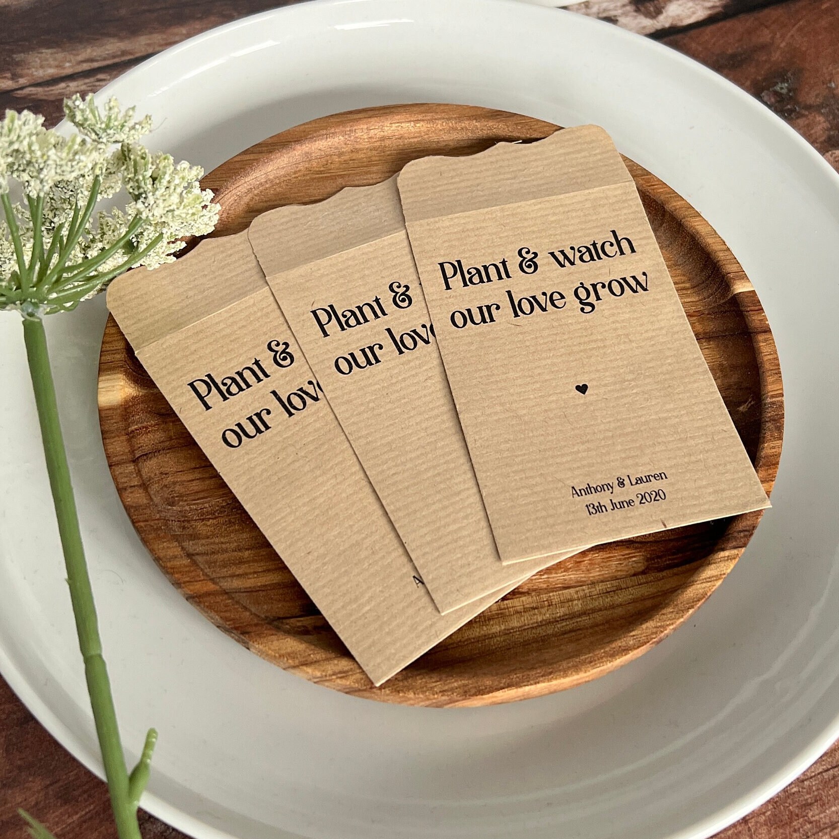 Give your guests a lasting memory of your special day with these personalised seed packet envelopes.