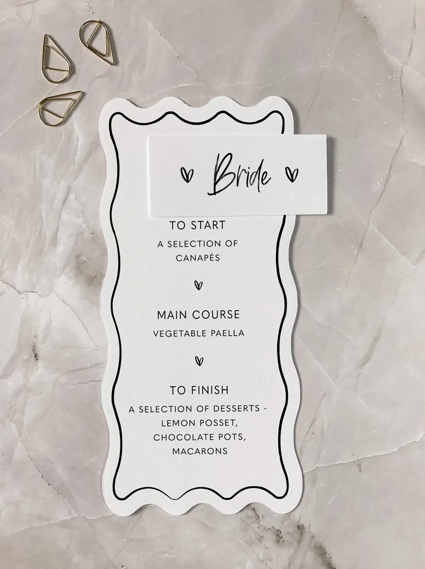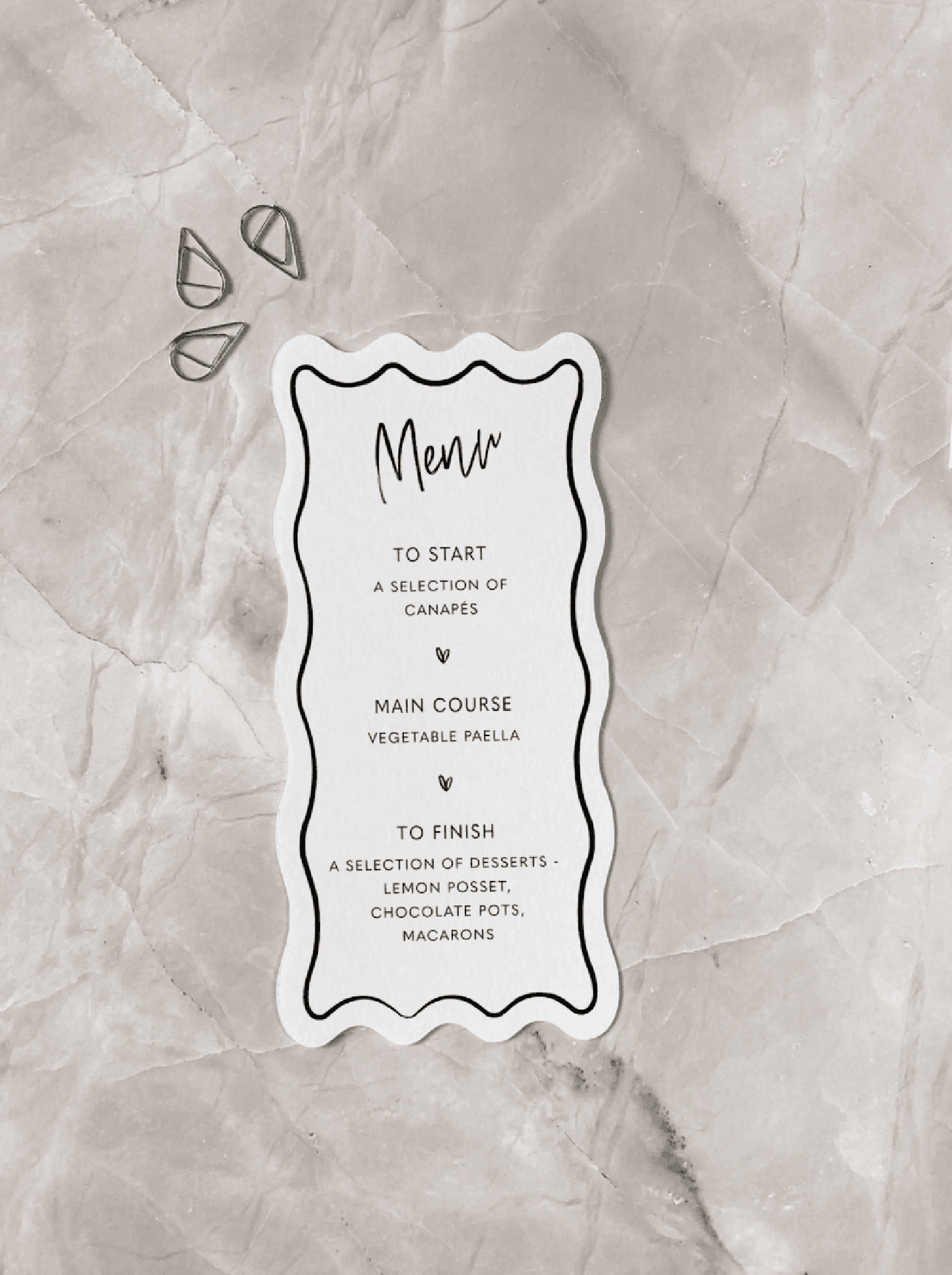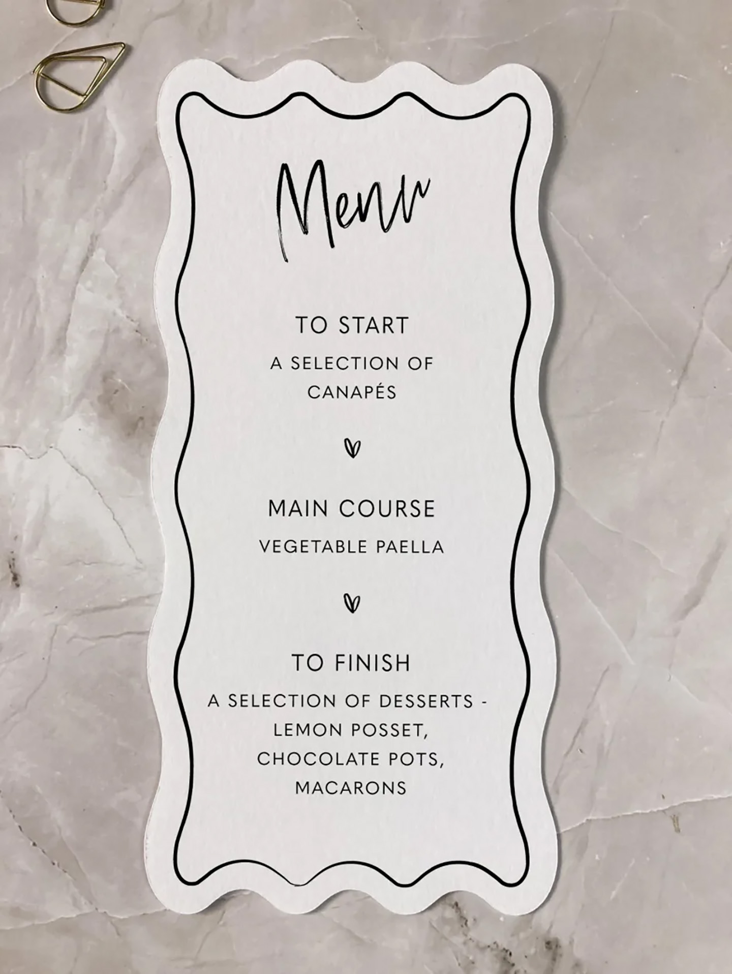 Monochrome wedding stationery is perfect for a timeless, luxurious and classic wedding, with the wave border adding a modern and unique twist